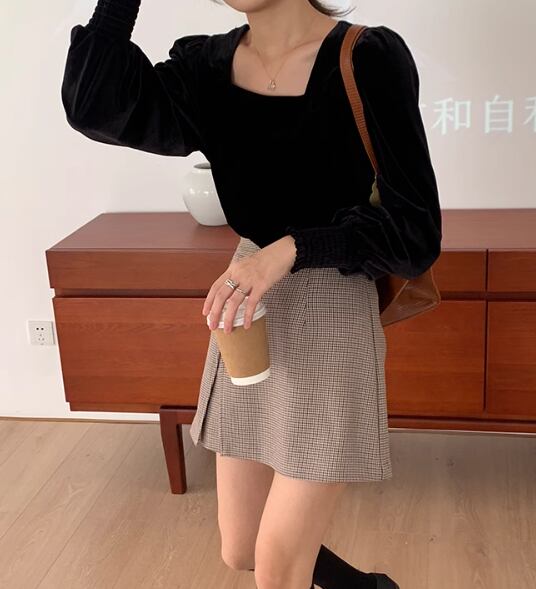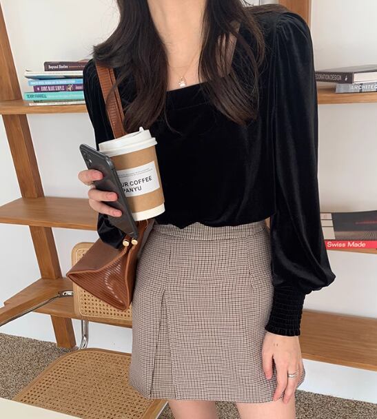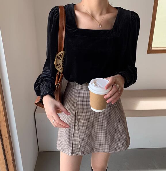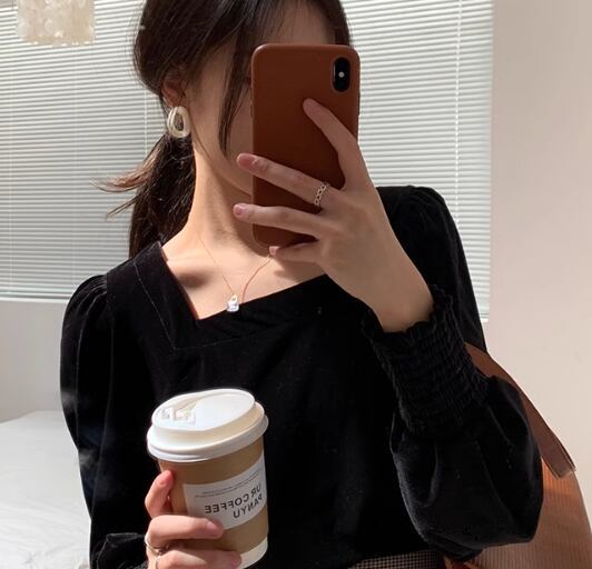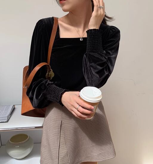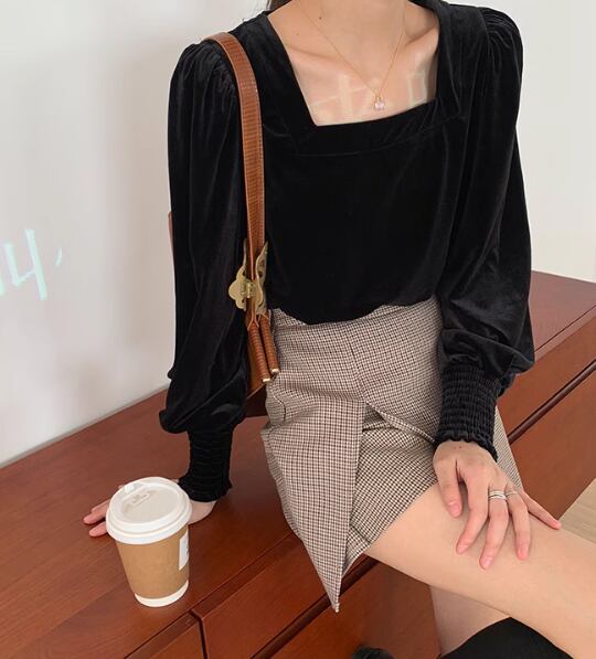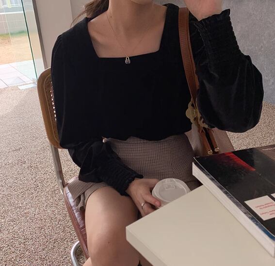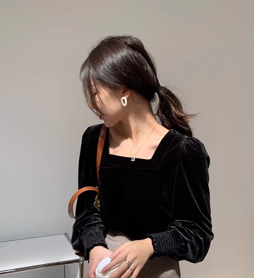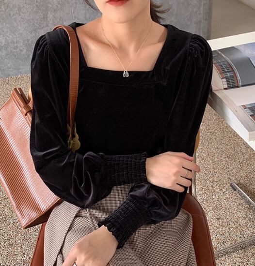レディース トップス プルオーバー 長袖 ボリューム袖 スクエアネック ベロア かわいい 大人可愛い きれいめ 上品 おしゃれ かっこいい レトロ こなれ感 ラフ クール モード系 エレガント 無地 秋 冬 ビジネス OL 学生 学校 デート 女子会 休日 韓国 オルチャン コーデ 楽ちん 普段使い 着回し モテ 清楚 トレンド フリーサイズ 黒 ブラック