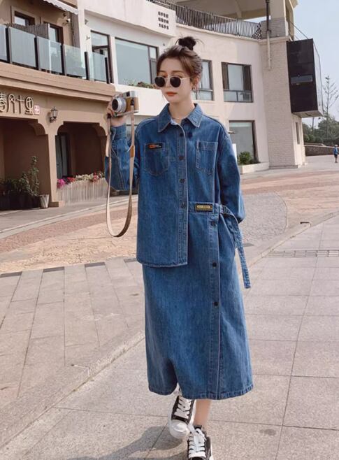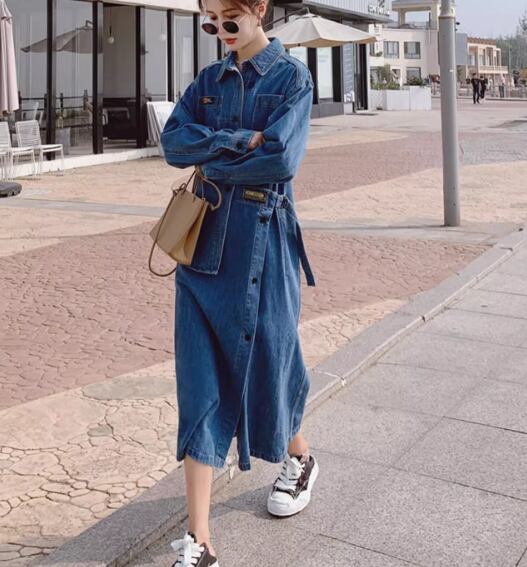 レディース ワンピース シャツ ブラウス シャツワンピ 膝下 ロング 長袖 襟付き 前開き デニム ブルーデニム かわいい 大人可愛い きれいめ カジュアル おしゃれ かっこいい クール モード系 ヴィンテージ 無地 春 学生 学校 デート お出かけ 公園 女子会 休日 バカンス 韓国 オルチャン コーデ 楽ちん 体型カバー 美脚 脚長 プチプラ 着回し モテ 清楚 トレンド 流行 S M L XL