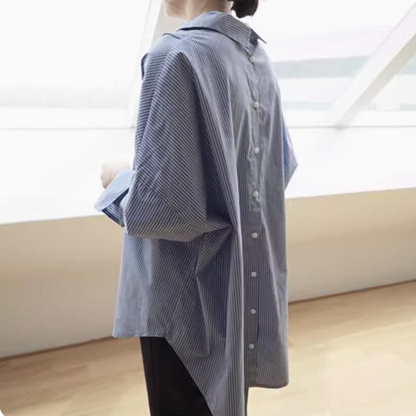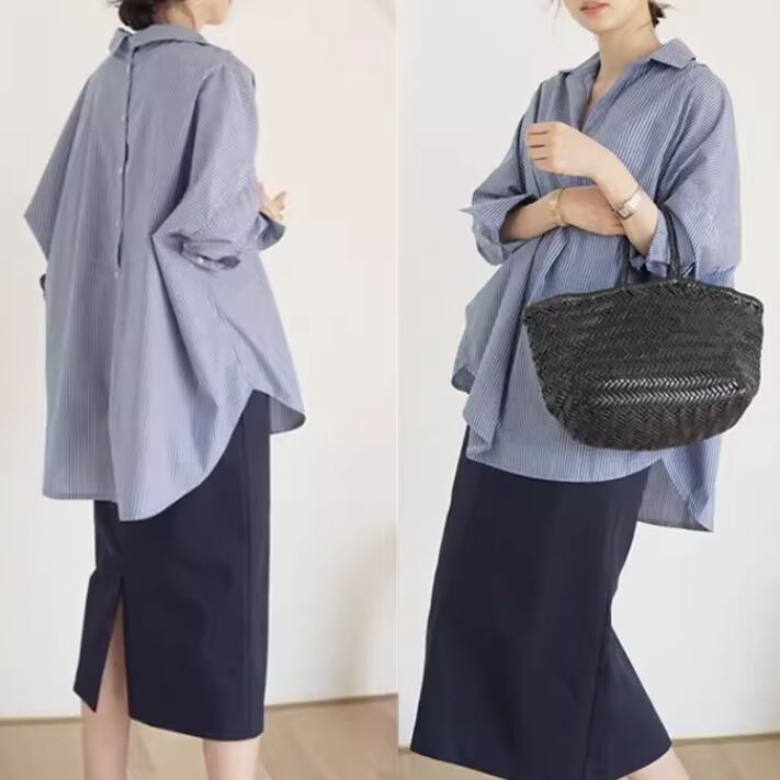 レディース トップス シャツ ブラウス 7分袖 襟付き ワイド 背中開き オーバーサイズ ボタン 薄手 かわいい 大人可愛い きれいめ シンプル カジュアル 上品 おしゃれ かっこいい レトロ こなれ感 ラフ ルーズ 個性的 主役級 存在感 とろみ感 抜け感 ラブリー キュート 都会的 ベーシック ナチュラル 無地 ストライプ 春 夏 デート お出かけ リゾート 女子会 休日 ショッピング お花見 カフェ コーデ 楽ちん 体型カバー 普段使い 清楚 S M L XL ゆったり ゆる ホワイト ブルー