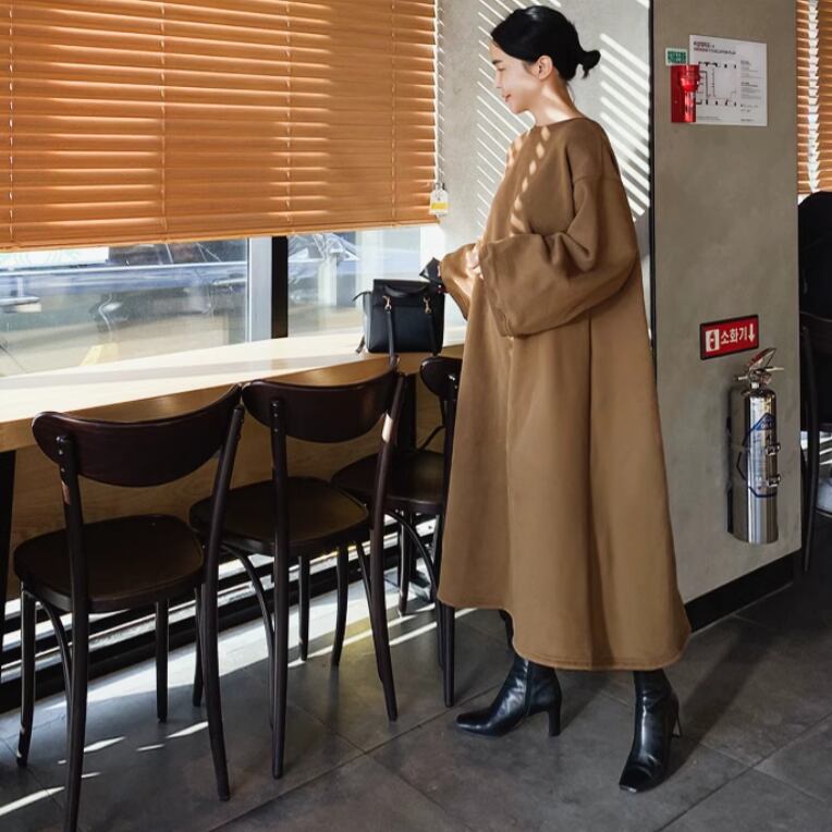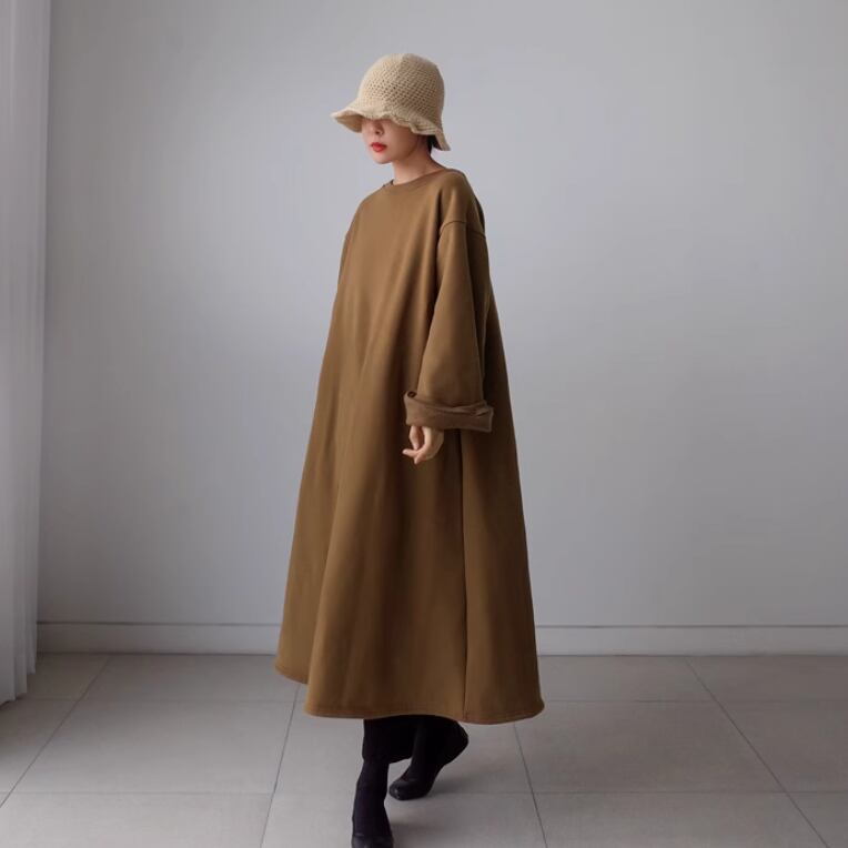 レディース スカート ワンピース プルオーバー ロングスカート ロング 長袖 ボリューム袖 萌袖 ラウンドネック 襟なし ノーカラー ワイド オーバーサイズ 裾ワイド ふっくら 伸縮性 ベルベット かわいい 大人可愛い きれいめ シンプル カジュアル 上品 おしゃれ かっこいい レトロ こなれ感 ラフ ルーズ 個性的 エレガント 主役級 存在感 とろみ感 抜け感 ラブリー キュート ベーシック ロマンティック ナチュラル 無地 秋 冬 ママ お出かけ 休日 コーデ 楽ちん 体型カバー ゆったり ゆる