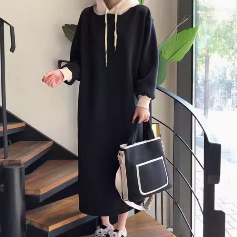 レディース スカート ワンピース プルオーバー パーカー ロングスカート 長袖 萌袖 フード ワイド ストレート オーバーサイズ ふっくら 伸縮性 かわいい 大人可愛い きれいめ シンプル カジュアル おしゃれ かっこいい レトロ こなれ感 ラフ ルーズ 個性的 主役級 存在感 とろみ感 抜け感 ラブリー キュート ベーシック アクティブ ナチュラル 無地 秋 冬 ママ 公園 休日 ショッピング カフェ コーデ 楽ちん 体型カバー 普段使い 定番 ゆったり ゆる フリーサイズ ブラック グレー カーキ