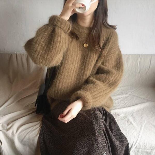 4色展開 ソフトミルクセーター レディース トップス アウター ニット セーター プルオーバー 長袖 ラウンドネック ワイド デザインニッチ モヘアシック ふわふわ ケーブルニット かわいい 上品 ルーズ カジュアル キュート 無地 春 秋 冬 10代 20代 30代 オフィス 通勤 通学 ショッピング カフェ トレンド 韓国 ゆったり