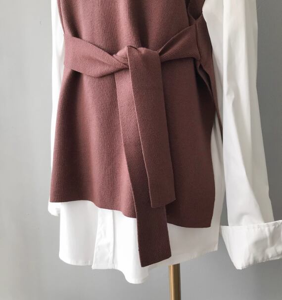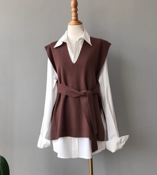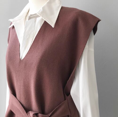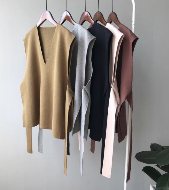 レディース トップス ニット ベスト 袖なし Vネック ベルト ウエストマーク ウエストリボン かわいい 大人可愛い きれいめ カジュアル おしゃれ かっこいい レトロ こなれ感 ラフ 無地 春 秋 オフィス ビジネス OL 通勤 重ね着 韓国 コーデ 普段使い レイヤード 清楚 定番 ゆったり ゆる フリーサイズ クリーム ブラウン グレー ライトグレー イエロー