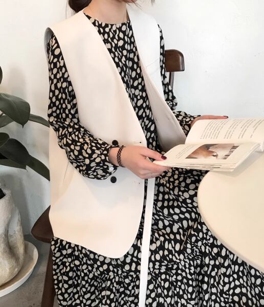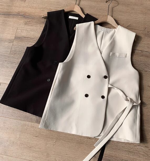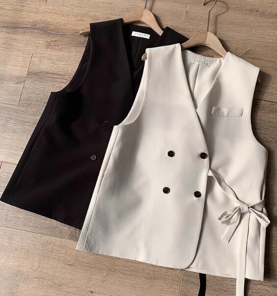 レディース トップス 袖なし Vネック スリム ウエストマーク スリット ポケット 前開き ボタン かわいい 大人可愛い きれいめ シンプル カジュアル おしゃれ かっこいい レトロ 存在感 フォーマル かっちり 都会的 無地 春 秋 オフィス ビジネス OL 学生 デート 公園 女子会 休日 韓国 オルチャン 普段使い 着回し モテ 清楚 トレンド 流行 M L ホワイト クリーム 黒 ブラック