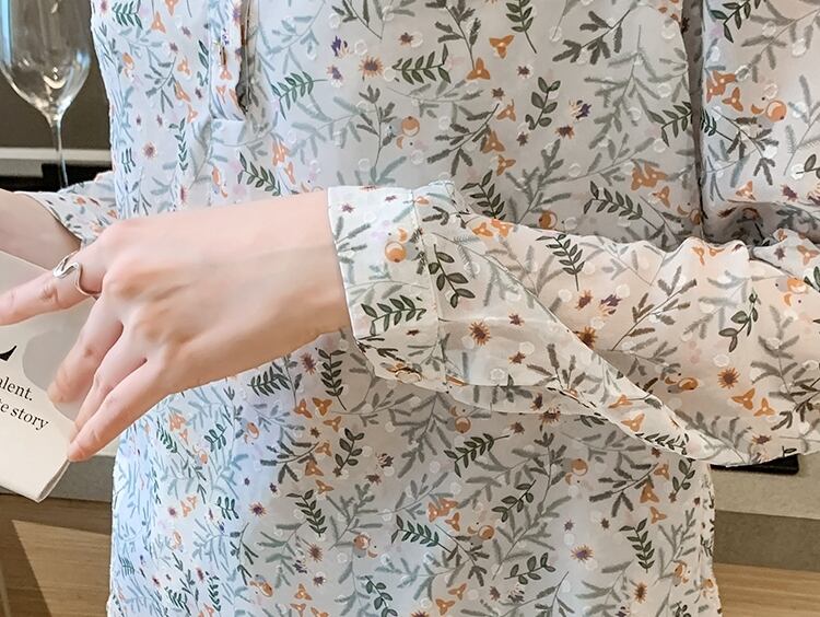 華やかな小花柄プリントが大人可愛い長袖ブラウスです。