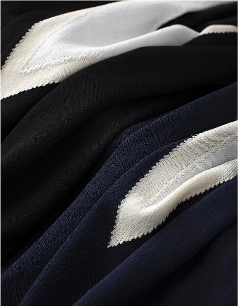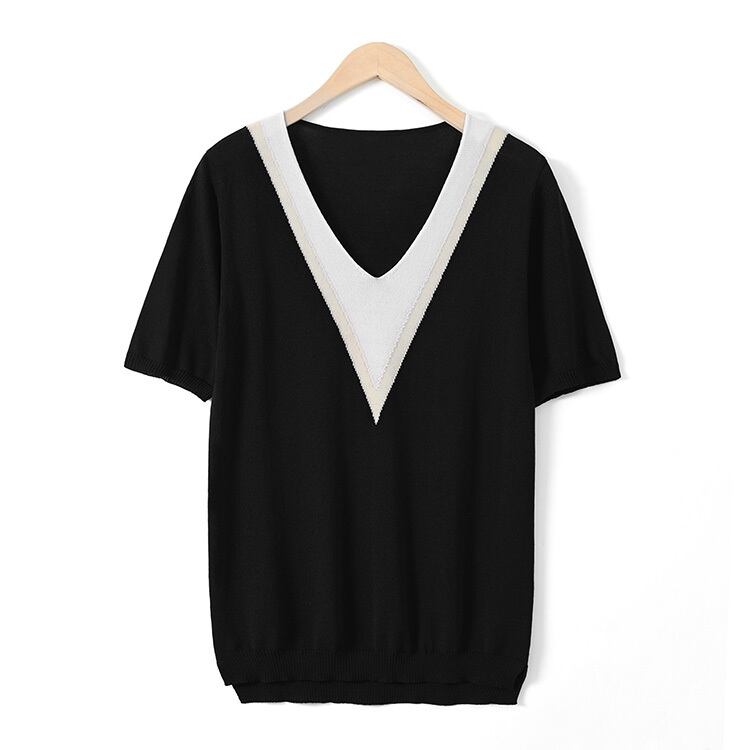 ホワイトの配色との切替がアクセントの半袖ニットトップス。