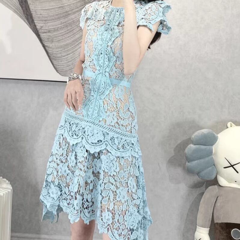 ドレス ワンピース パーティー ステージフレアスリーブ ラウンドネック プリンセスライン スレンダー スリム アシンメトリー Aライン レース フリル スリット 透け感 シースルー サイドスリット 薄手 可愛い きれいめ 大人可愛い 上品 おしゃれ エキゾチック キュート ガーリー エレガント 主役級 存在感 とろみ感 抜け感 ゴージャス エレガント セクシー 華やか イベント 美脚 高見え