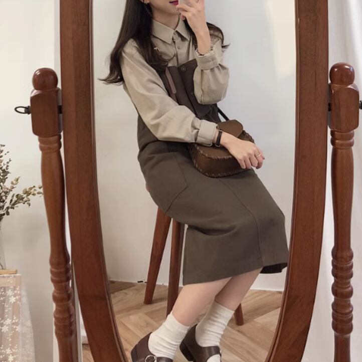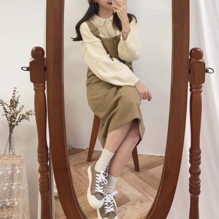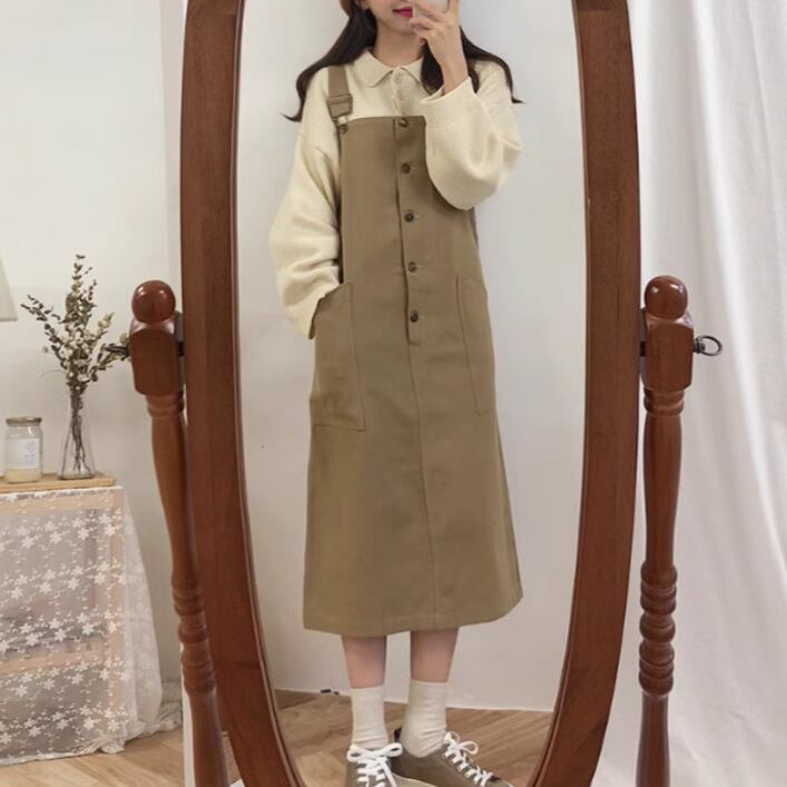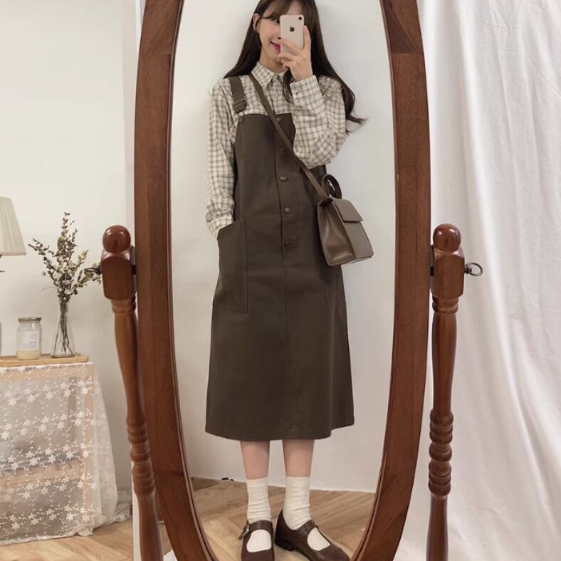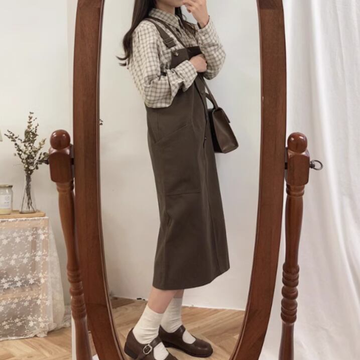 レディース スカート ジャンパースカート 膝下 ミモレ ストレート Iライン ポケット 薄手 かわいい 大人可愛い シンプル カジュアル おしゃれ レトロ こなれ感 ラフ ガーリー 存在感 とろみ感 抜け感 ラブリー キュート カントリー ナチュラル オールシーズン ロングシーズン ママ 学生 通学 デート お出かけ イベント 旅行 公園 女子会 休日 ショッピング コンサート ライブ カフェ フェス アースカラー 重ね着 楽ちん 体型カバー 普段使い 着回し モテ S M L XL ブラウン カーキ