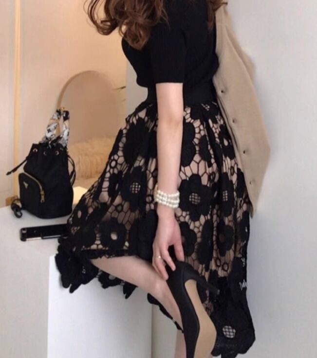 レディース スカート フレアスカート ミモレ フレア Aライン フェミニン レース ファスナー ハイウエスト 編み込み かわいい 大人可愛い きれいめ 上品 おしゃれ レトロ 主役級 存在感 フォーマル 花柄 春 夏 秋 20代 30代 通勤 デート お出かけ パーティー イベント レストラン 公園 女子会 休日 ショッピング お花見 合コン コンパ カフェ 脚長 普段使い 着回し M L XL 2XL 3XL 4XL 5XL 大きいサイズ ブラック レッド グリーン 秋カラー カラバリ