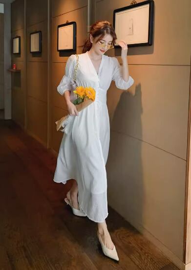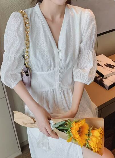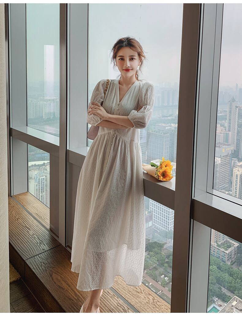 レディース ワンピース 前開き ロング 7分袖 Vネック 襟なし フレア Aライン フェミニン ウエストマーク ハイウエスト 透け感 シースルー 異国風 薄手 大人可愛い きれいめ シンプル カジュアル おしゃれ こなれ感 ラフ ガーリー 個性的 モード系 エレガント モダン 主役級 存在感 抜け感 都会的 ベーシック ナチュラル 無地 春 夏 デート お出かけ ビーチ バカンス 重ね着 コーデ 楽ちん モテ 清楚 トレンド 流行 インスタ映え 定番 S M L XL ホワイト レッド 大人カラー