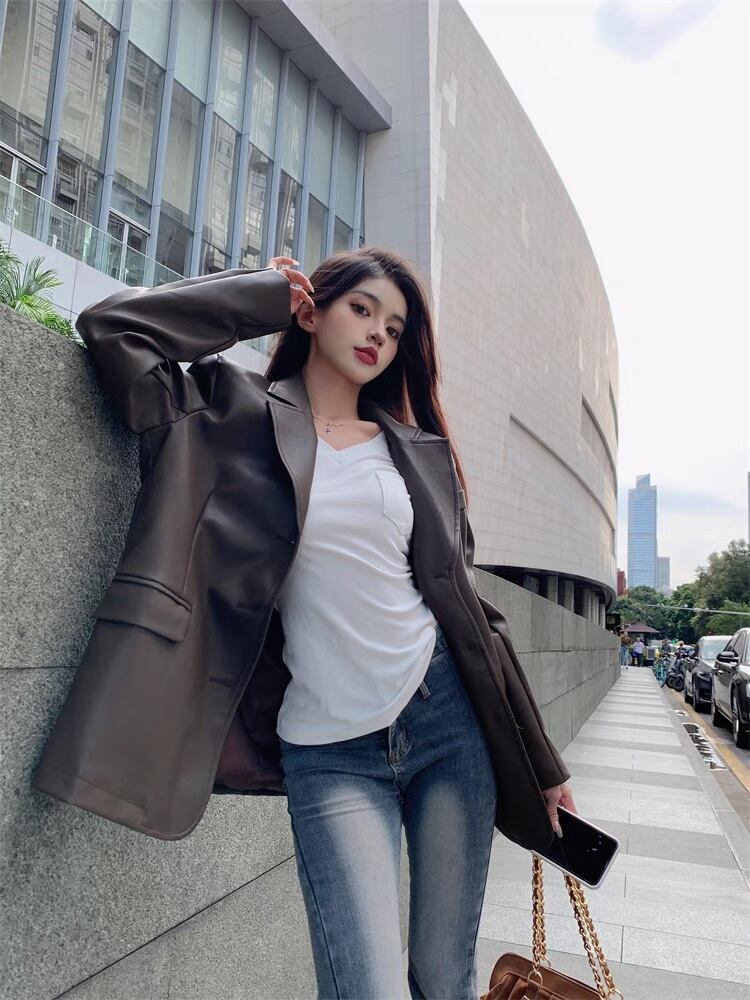 都会的でおしゃれなレディース レザージャケット!ストリートからエレガントまで幅広く対応。シンプルでかっこいいデザインで、メンズライクなスタイルも楽しめます。秋冬のお出かけや休日にぴったり。M〜3XLまでのサイズ展開で、ビッグサイズもご用意。ブラックとブラウンの2色から選べるので、着回しの幅も広がります。トレンド感満載で、インスタ映えする一着です!