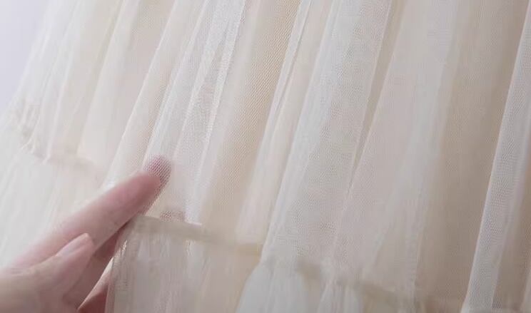 春にぴったりの優しげで温かみのあるカラーが魅力的なチュールスカート。