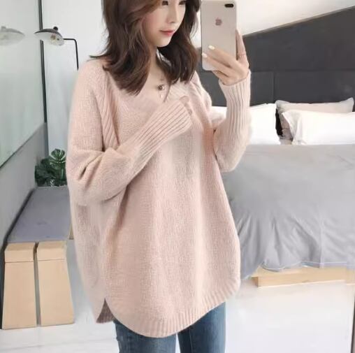シックなカラーとシンプルで洗練されたデザインが大人可愛い、長袖のニットセーター。