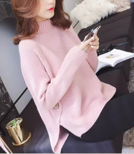 レディース トップス ニット セーター プルオーバー ミドル丈 長袖 ハイネック スリット ボタン 厚手 大人可愛い きれいめ シンプル カジュアル 上品 おしゃれ かっこいい こなれ感 ボーイッシュ ルーズ 個性的 クール エレガント ラグジュアリー ナチュラル ハンサム シック 高級感 芸術的 アーティスティック スタイリッシュ 無地 春 秋 冬 デート お出かけ 韓国 体型カバー 普段使い 着回し S M L XL ゆったり ブラック イエロー オフホワイト ピンク ブルー