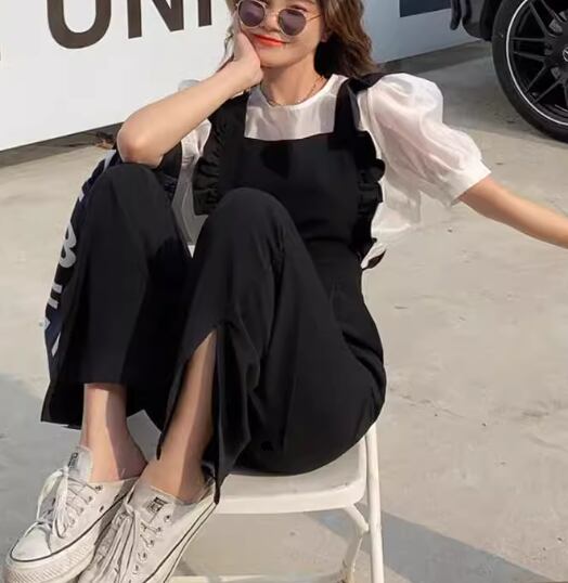 クールなブラック×スタイリッシュなデザインが大人可愛い、フルレングスのオーバーオール。