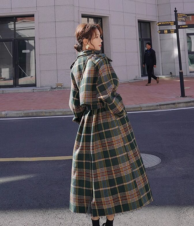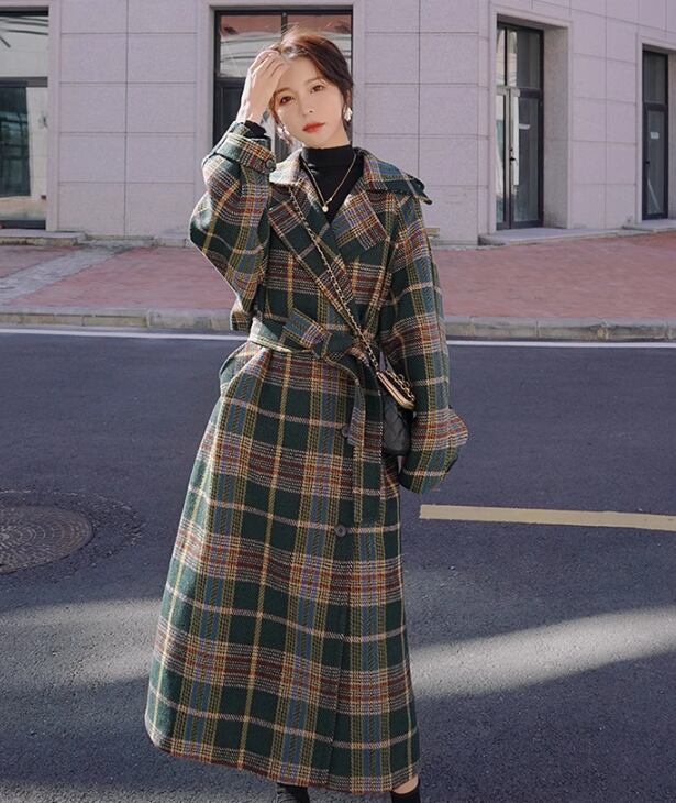 レディース アウター コート ウールコート ロング丈 長袖 袖あり 襟付き 角襟 ベルト ポケット 前開き ボタン ポリエステル かわいい 大人可愛い 上品 おしゃれ かっこいい レトロ こなれ感 ラフ 主役級 存在感 都会的 チェック 柄 秋 冬 クリスマス バレンタイン 女性用 20代 30代 通勤 デート お出かけ 旅行 公園 女子会 休日 ショッピング 合コン コンパ カフェ 重ね着 暖かい 防寒 普段使い 着回し モテ S M L XL 緑 グリーン 大人カラー 秋カラー