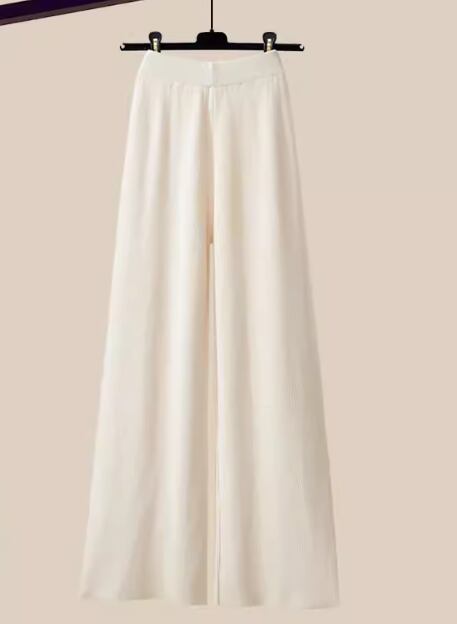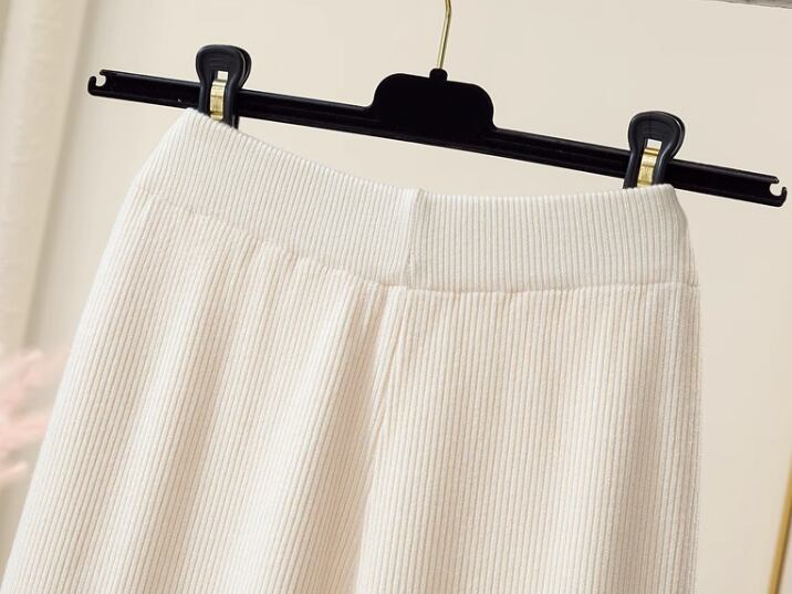 長袖のオーバーサイズトレーナーとフルレングスのニットパンツの二点セットです。