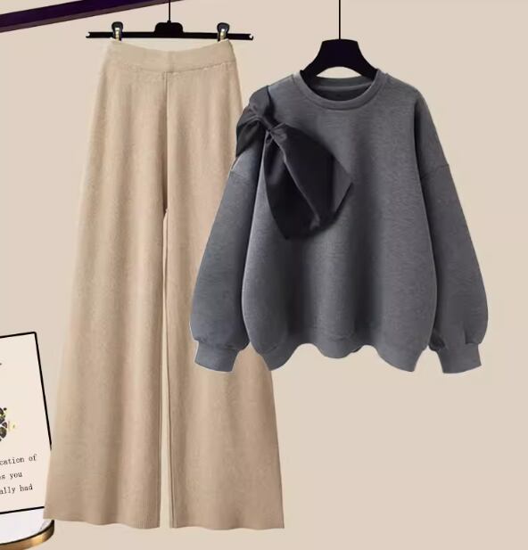 二点セット 上下セット ツーピース レディース トップス パンツ ルームウェア プルオーバー トレーナー スウェット 部屋着 セットアップ ニットパンツ フルレングス 長袖 ラウンドネック リボン ウエストゴム かわいい カジュアル おしゃれ レトロ ラフ ガーリー ルーズ 個性的 存在感 キュート ナチュラル リラックス シック 無地 秋 冬 デート お出かけ 楽ちん 普段使い 着回し トレンド 流行 S M L XL ゆったり ゆる 大きめ オーバーサイズ ブラック グレー オフホワイト カーキ