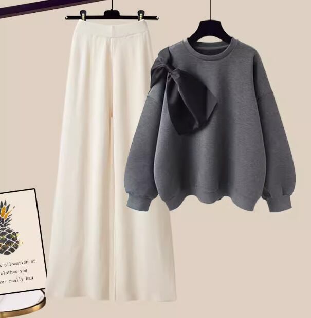 大きなりぼんがアクセントになっていて女性らしい、スウェットの上下セット。