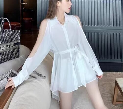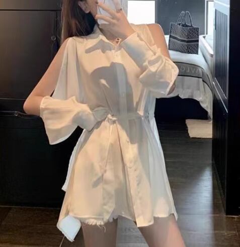 二点セット 上下セット ツーピース レディース パンツ シャツ セットアップ ショートパンツ 長袖 オフショルダー 襟付き ウエストマーク ウエストリボン ボタン 大人可愛い きれいめ シンプル カジュアル おしゃれ かっこいい こなれ感 ルーズ 個性的 クール モード系 エレガント 存在感 抜け感 ラグジュアリー セクシー シック 高級感 スタイリッシュ 無地 春 夏 秋 デート お出かけ 普段使い 着回し トレンド 流行 S M L ゆったり ホワイト ブラック