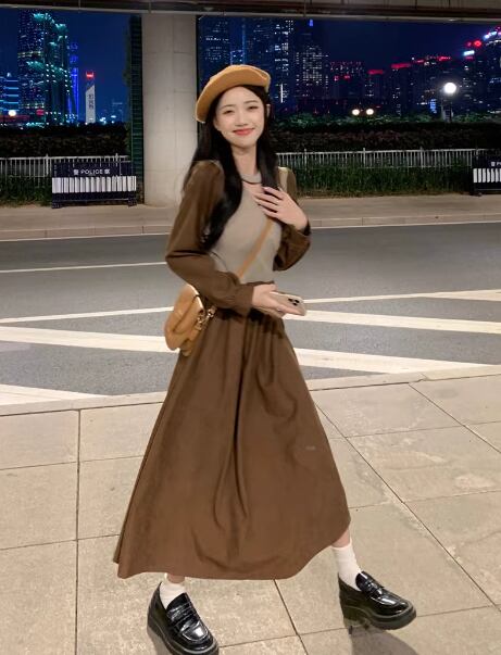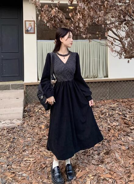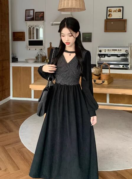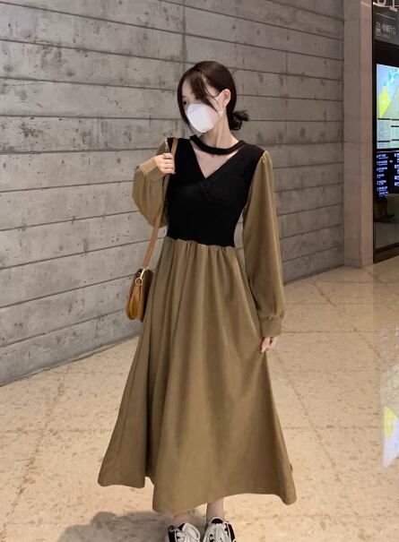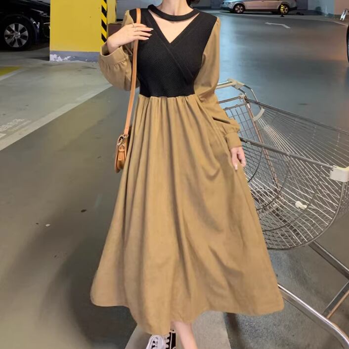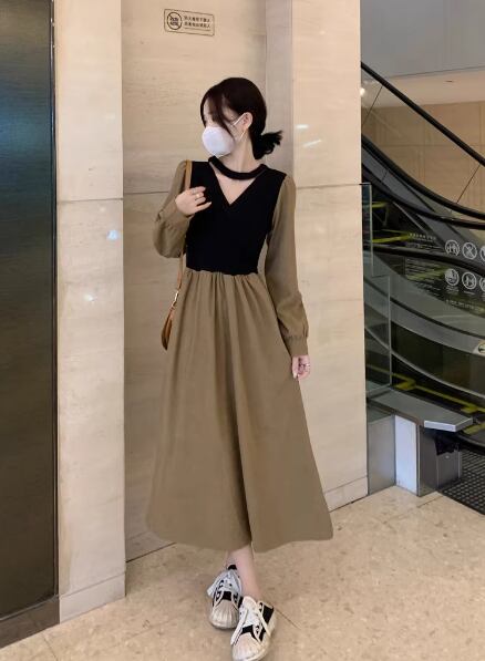 レディース ワンピース ドレス フレア ミモレ 長袖 Vネック カシュクール 切り替えデザイン バイカラー ドッキング 中厚手 大人可愛い きれいめ 上品 おしゃれ レトロ 個性的 主役級 存在感 ラブリー キュート プリンセス ロマンティック 無地 春 クリスマス バレンタイン OL 学生 デート お出かけ リゾート 旅行 女子会 休日 ショッピング 発表会 コンサート 合コン コンパ カフェ 普段使い トレンド インスタ映え フリーサイズ ブラック ブラウン ベージュ