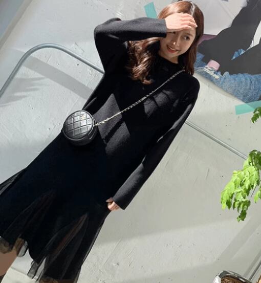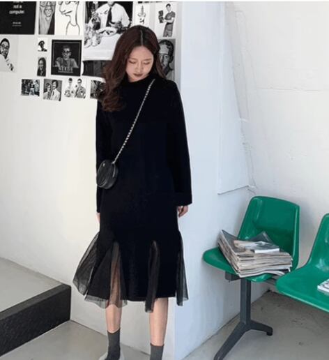 レディース ワンピース プルオーバー ミモレ ロング 長袖 ハイネック Aライン 切り替えデザイン ドッキング メッシュ 大人可愛い きれいめ シンプル カジュアル 上品 おしゃれ レトロ ラフ ガーリー ルーズ 個性的 ナチュラル リラックス シック 優しい 穏やか 無地 春 秋 デート お出かけ 楽ちん 体型カバー 普段使い S M ゆったり ブラック グレー