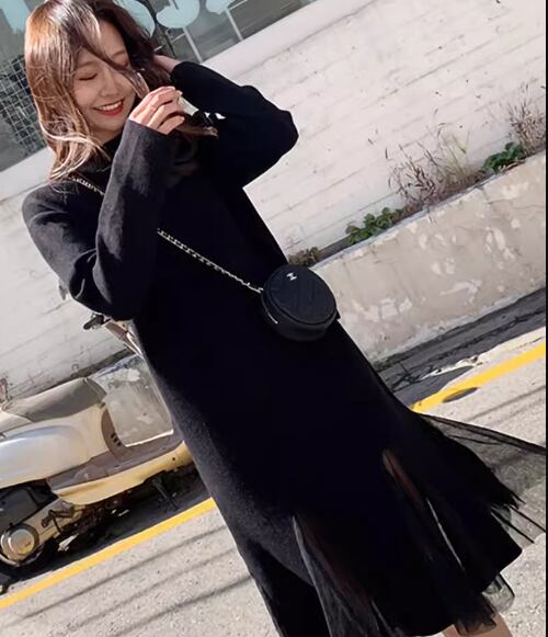 裾の部分に二種類の素材を使用しているところがおしゃれ!