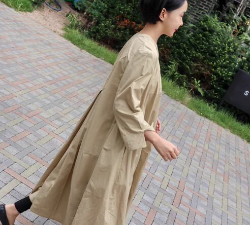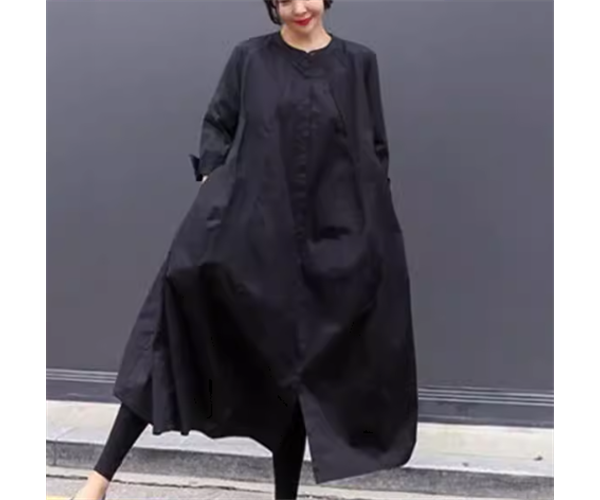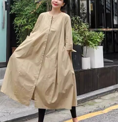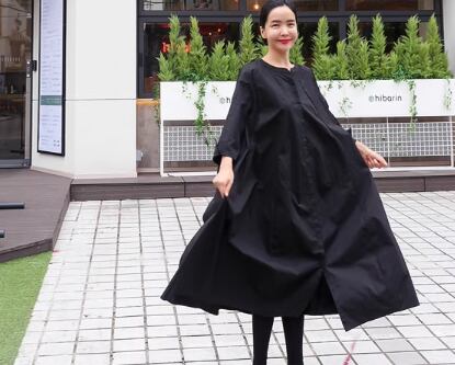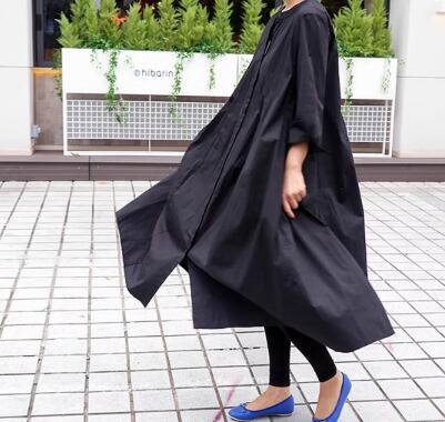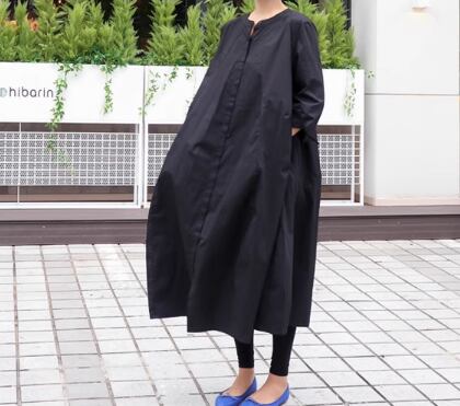 レディース ワンピース シャツワンピ ロング 長袖 ラウンドネック Aライン 綿 コットン 大人可愛い シンプル カジュアル レトロ ラフ ルーズ 存在感 ナチュラル リラックス シック 優しい 穏やか 無地 春 秋 お出かけ 楽ちん 体型カバー 普段使い ゆる フリーサイズ 大きめ オーバーサイズ ビッグシルエット ゆったりウエスト ブラック カーキ 大人カラー 秋カラー