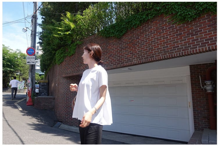 シンプルなのに着映えする切り替え半袖Tシャツ。