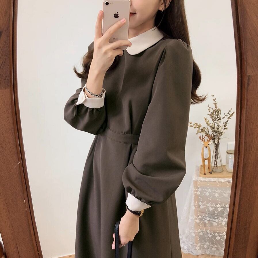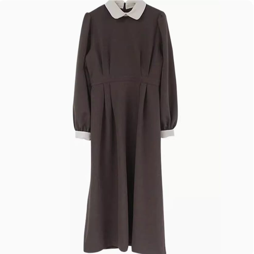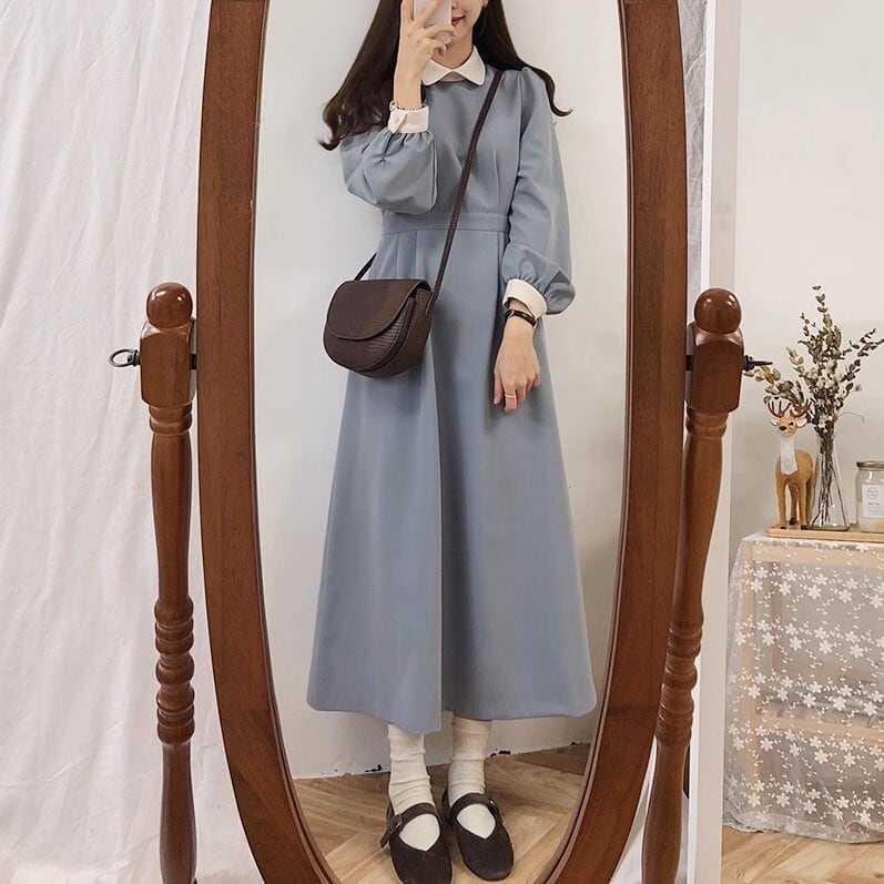 レトロで大人可愛い長袖の襟付きワンピースです。
