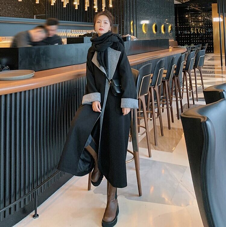 バイカラー配色 ガウンコート レディース コート アウター 上着 膝下 ミモレ ミディアム丈 長袖 ドロップショルダー Vネック 襟付き テーラードカラー ウエストマーク ウエストリボン 前開き アウトポケット かわいい 大人可愛い きれいめ シンプル カジュアル 上品 おしゃれ こなれ感 無地 秋 冬 ママ マタニティ 女の子 OL 通勤 学生 学校 通学 デート お出かけ 女子会 休日 ショッピング 韓国 オルチャン 体型カバー 普段使い 着回し S M L XL ゆる ブラック グレー モノトーン