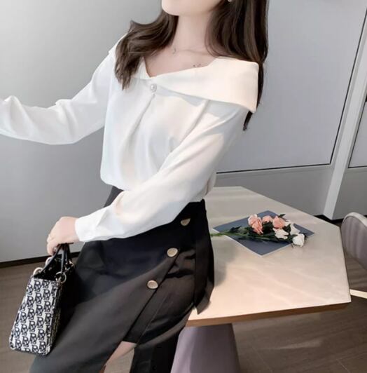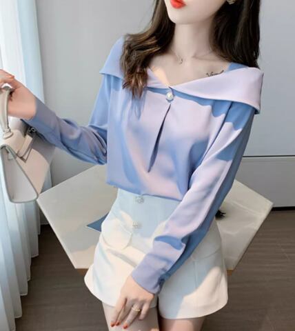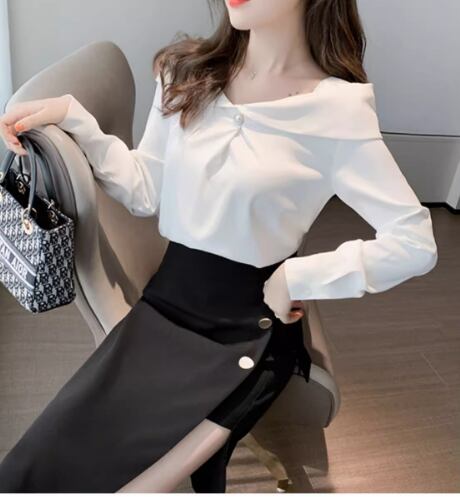 レディース トップス シャツ ブラウス 長袖 オフショルダー スリム 細身 ストレート 肌見せ 薄手 かわいい きれいめ 上品 おしゃれ ガーリー ラブリー キュート 都会的 ラグジュアリー セクシー 華やか 柔らかい 無地 春 オフィス ビジネス OL 通勤 パーティー イベント 女子会 休日 韓国 オルチャン コーデ プチプラ 普段使い 清楚 トレンド 流行 S M L XL 2XL