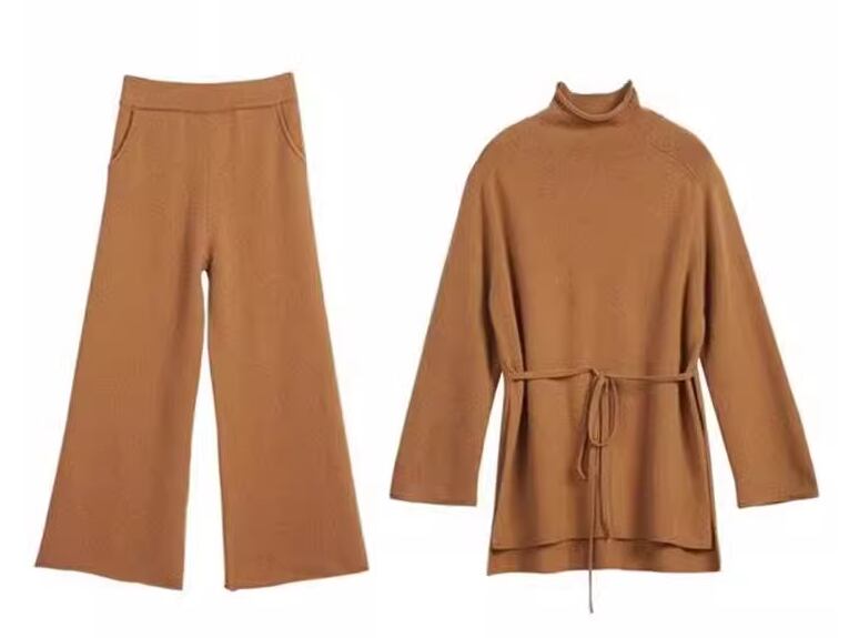 2点セット ニットスーツ レディース トップス パンツ ボトムス ニット セーター プルオーバー セットアップ ロングパンツ ワイドパンツ ツーピーストップス ロング 丈長 長袖 ハイネック ワイド ウエストマーク ウエストリボン もこもこ ふわふわ ハイウエスト 伸縮性 かわいい 大人可愛い きれいめ シンプル カジュアル 上品 おしゃれ かっこいい レトロ こなれ感 ラフ ルーズ 個性的 主役級 存在感 とろみ感 抜け感 キュート 都会的 アクティブ 無地 秋 冬 お出かけ 休日 コーデ 脚長 ゆる