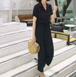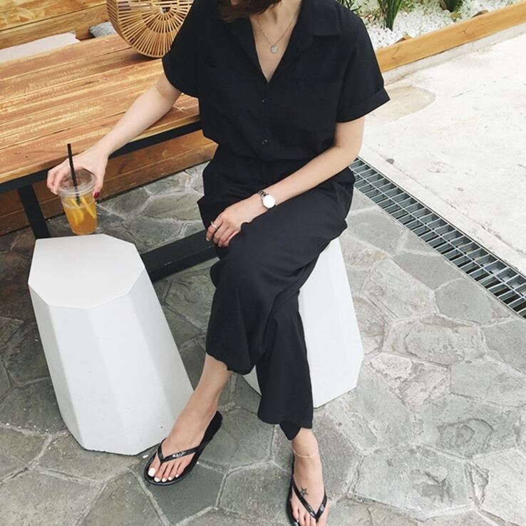 レディース オールインワン 9分丈 半袖 ロールアップ Vネック 襟付き スリム 裾ワイド ポケット ハイウエスト ウエストゴム 大人可愛い シンプル カジュアル ラフ 個性的 クール 主役級 存在感 都会的 リラックス ハンサム シック 無地 春 夏 イベント リゾート 旅行 海 プール ビーチ バカンス 楽ちん 体型カバー 脚長 ロールアップ 動きやすい S M L XL ブラック