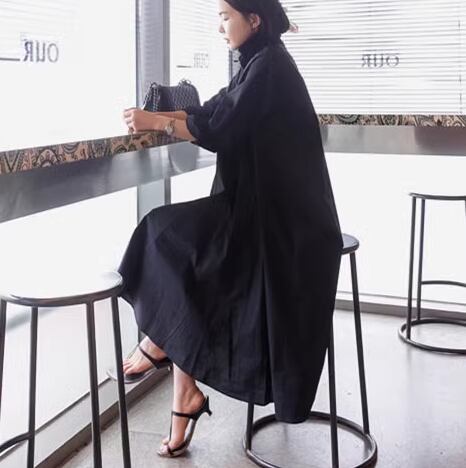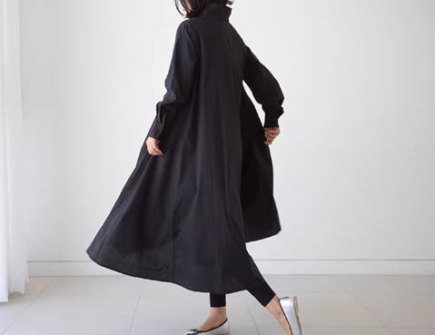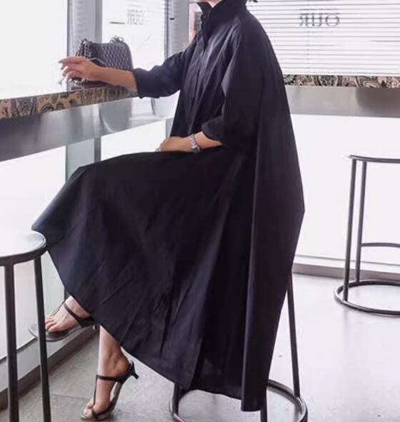 ゆるだぼなビッグシルエットが特徴的な、ロング丈のシャツワンピース。
