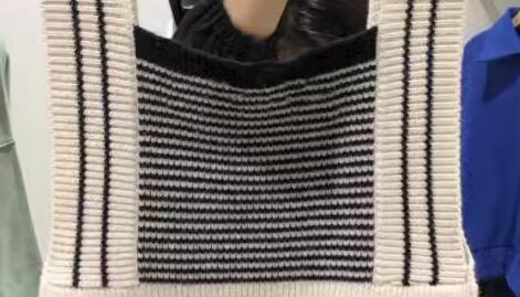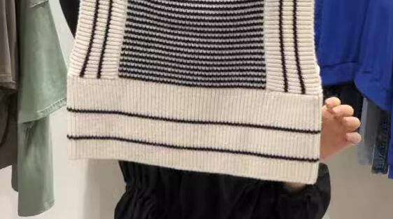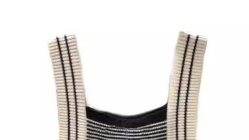 ホワイト×ブラックのモノトーンな色使いが大人可愛い、ニット素材のノースリーブトップス。
