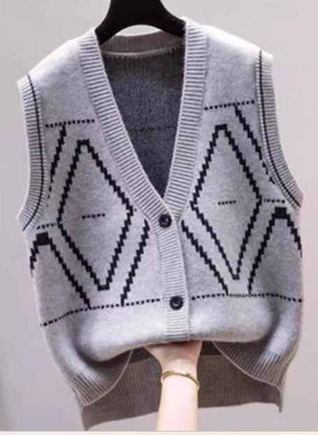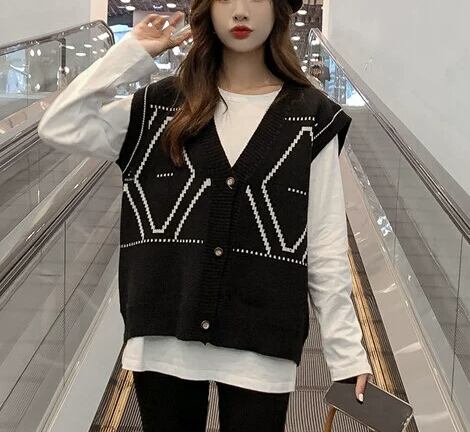 レディース トップス ニット ベスト 前開き ショート ミドル丈 袖なし ノースリーブ Vネック 大人可愛い きれいめ シンプル カジュアル 上品 おしゃれ かっこいい レトロ こなれ感 ボーイッシュ ルーズ 個性的 クール エレガント 存在感 ナチュラル シック 高級感 芸術的 アーティスティック アーガイル 菱形 秋 デート お出かけ 重ね着 体型カバー 普段使い 着回し レイヤード M L XL ゆったり ブラック グレー レッド