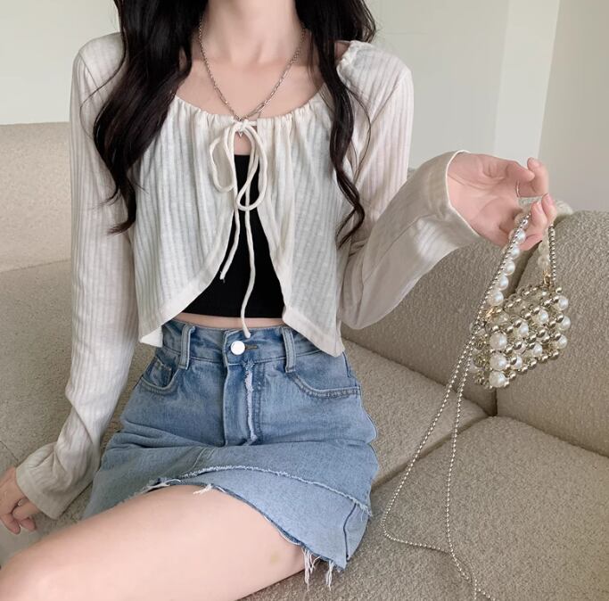 レディース ジャケット カーディガン ショート 長袖 ラウンドネック 襟なし フェミニン リボン リブ 薄手 コットン 大人可愛い きれいめ カジュアル 上品 おしゃれ ガーリー 主役級 存在感 キュート 無地 夏 母の日 授業参観 会議 ミーティング ママ OL 学生 デート お出かけ リゾート レストラン 女子会 休日 バカンス ホテル ガーデン ショッピング 合コン コンパ プチプラ 普段使い 着回し モテ 清楚 インスタ映え S M L XL ホワイト ブラック ブルー