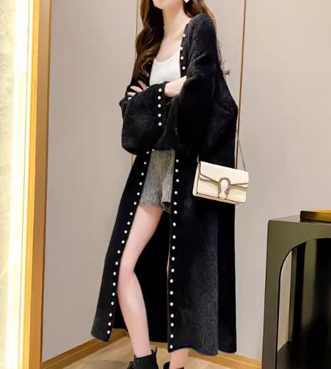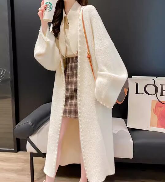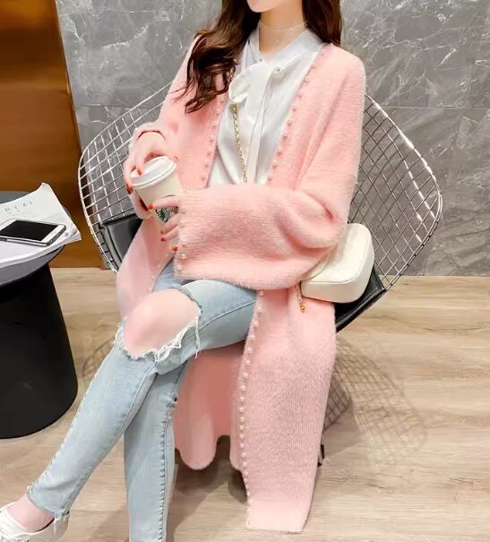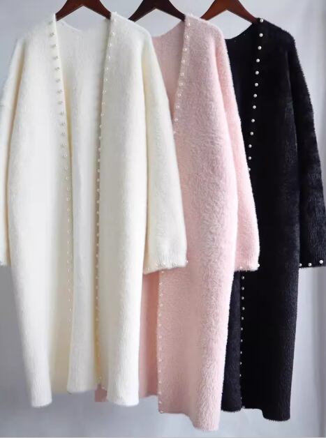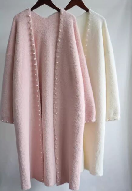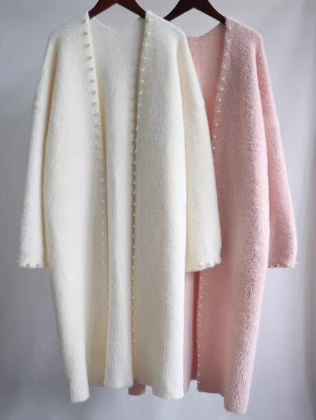 レディース ニット カーディガン 上着 羽織 前開き ロング 長袖 Vネック 襟なし ノーカラー ストレート フェミニン ボタン ビーズ 厚手 かわいい 大人可愛い きれいめ シンプル カジュアル 上品 おしゃれ ガーリー ルーズ ラブリー キュート ラグジュアリー シック 高級感 優しい 穏やか 柔らかい 無地 春 秋 デート お出かけ 韓国 暖かい 防寒 普段使い 着回し トレンド 流行 ゆったり ゆる フリーサイズ 大きめ オーバーサイズ ホワイト ブラック ピンク