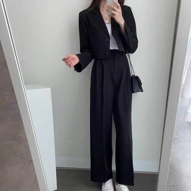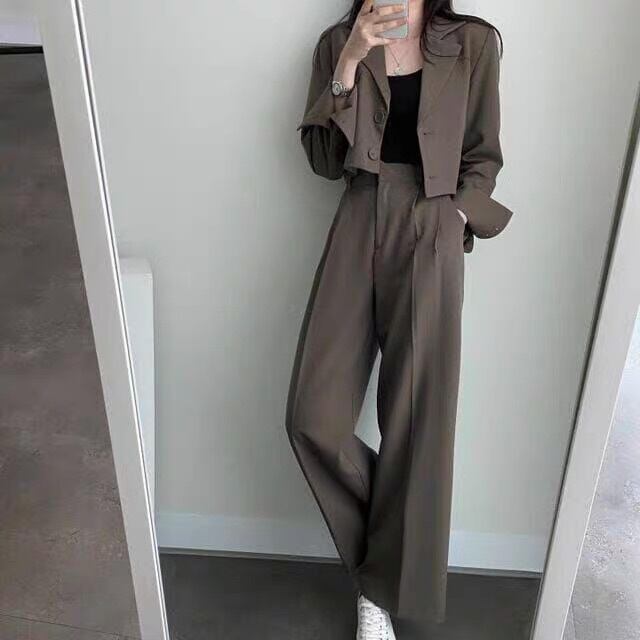 都会的なシンプルさに大人可愛さをプラスしたショート丈ジャケット&パンツのセットが登場!ラフなデイリースタイルからお出かけやイベントまで、幅広いシーンで活躍します。メンズライクなマニッシュスタイルからガーリーな雰囲気まで、自由自在に着こなせるアイテムです。MサイズからLサイズまでのサイズ展開と、ブラックやブラウン、アプリコットなどのベーシックカラーで、あなたのスタイルに合わせてお選びいただけます。今季のトレンドを取り入れつつ、インスタ映えも叶える一着。着回し力抜群で、毎日のコーディネートが楽しくなること間違いなし!