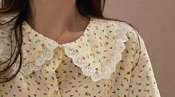 レースのついた襟や袖がとてもキュートなアイテムです。