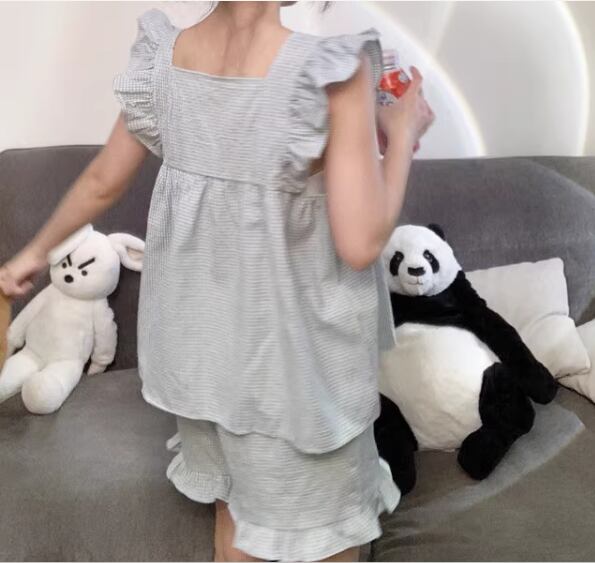 夏にぴったりの涼しげなデザイン×爽やかなブルーの色味が魅力的なルームウェアの上下セット。
