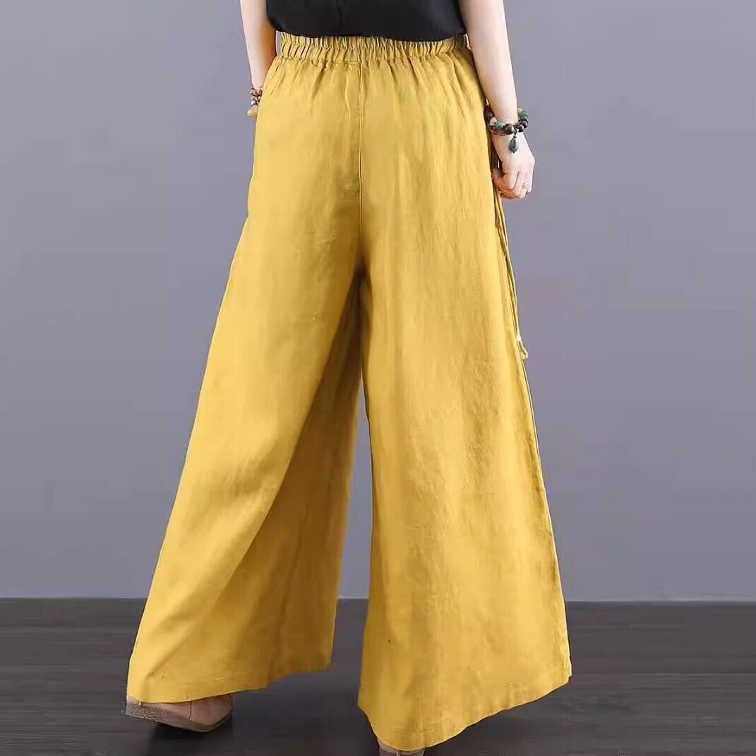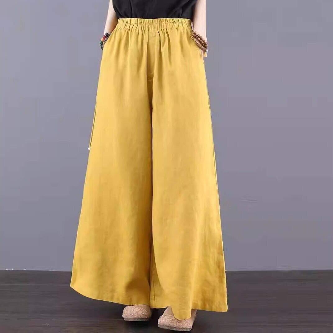 パンツ ボトムス ワイドパンツ 膝下 ロング フレア Aライン 裾ワイド ウエストゴム 薄手 かわいい 大人可愛い きれいめ シンプル カジュアル おしゃれ アジアン エスニック こなれ感 ラフ メンズライク とろみ感 抜け感 キュート アクティブ ナチュラル 無地 春 夏 ママ マタニティ 学生 通学 お出かけ お泊まり アウトドア キャンプ 旅行 公園 休日 フェス 楽ちん 体型カバー 脚長 普段使い 着回し M L XL 2XL 3XL ゆったり ゆる ホワイト イエロー ピンク ブルー ネイビー