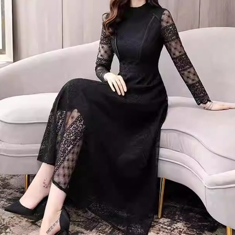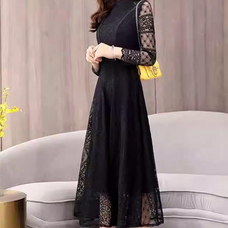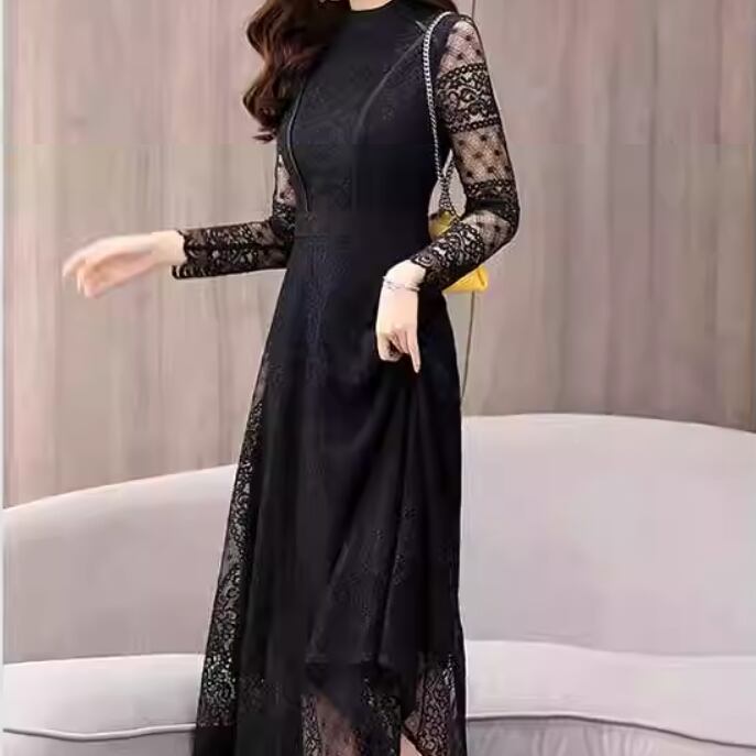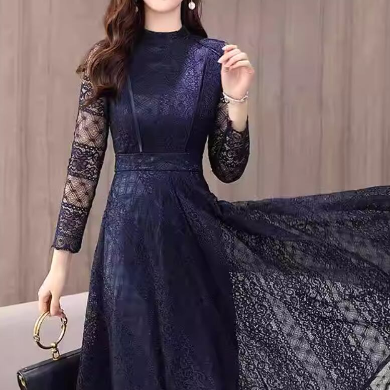 ドレス ワンピース ウェディング パーティー 結婚式 二次会 披露宴 演奏会 発表会 ミモレ 長袖 スタンドカラー スレンダー スリム フレア 細身 Aライン レース 透け感 シースルー 可愛い きれいめ シンプル 大人可愛い 上品 おしゃれ かっこいい レトロ クール モード エレガント モダン 主役級 存在感 とろみ感 抜け感 クラシック 清楚 ゴージャス エレガント 華やか ナチュラル クラシカル 二の腕カバー 美脚 脚長 高見え 格上げ 春 2XL S M L XL ブラック ネイビーブルー