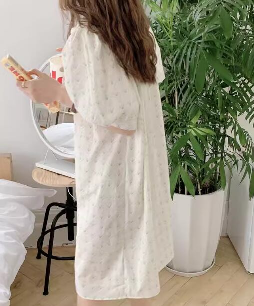 レディース ワンピース ルームウェア パジャマ プルオーバー 部屋着 寝巻き ミモレ 半袖 ラウンドネック レース 薄手 綿 コットン かわいい 大人可愛い きれいめ カジュアル 上品 おしゃれ レトロ ラフ ガーリー ルーズ ラブリー キュート プリンセス ナチュラル 清潔感 リラックス シック 高級感 優しい 穏やか フェアリー 柔らかい プリント 夏 お泊まり 楽ちん 体型カバー 普段使い 清楚 ゆったり フリーサイズ ホワイト