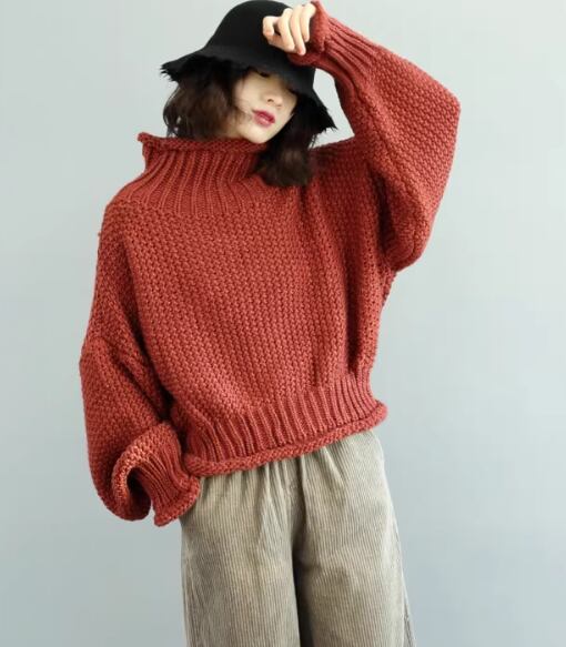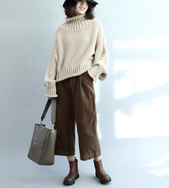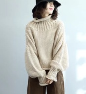 このオーバーサイズのニットセーターは、ボリューム感のある袖とハイネックが特徴。編み込みの針編みが施された、厚手で暖かい一枚です。シンプルでカジュアルなデザインなので、大人可愛いスタイルやこなれ感のあるラフなコーディネートにぴったり。ボトムスを選ばず、気軽に着こなせるのも魅力です。