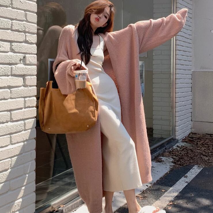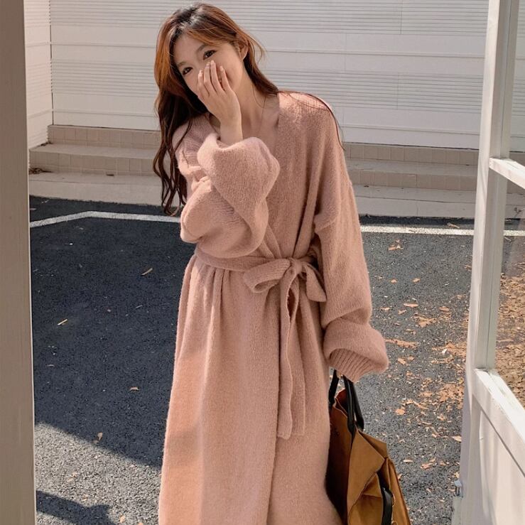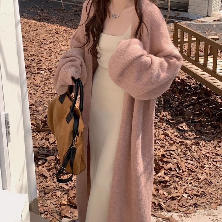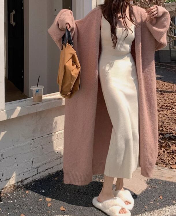 ロングニットカーディガンとワンピースの2点セット