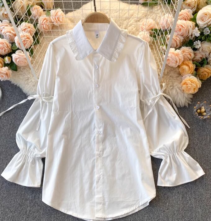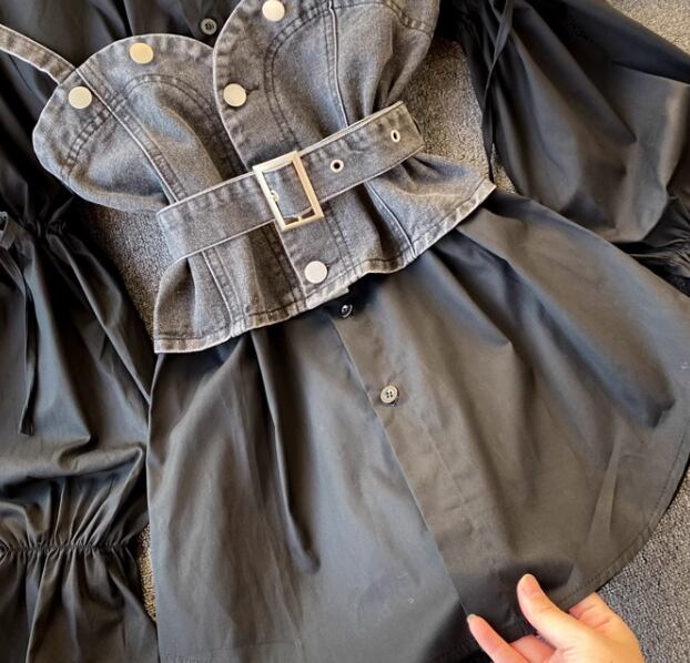 トレンド感満載の大人可愛いセットアップが登場しました。ビスチェとブラウスの2点セットで、重ね着スタイルを手軽に楽しむことができます。ブルーデニムの素材がアクセントを加え、シンプルな中にもこなれ感が漂うデザインです。ボリューム袖が女性らしさを引き立て、ガーリーな印象を演出。
