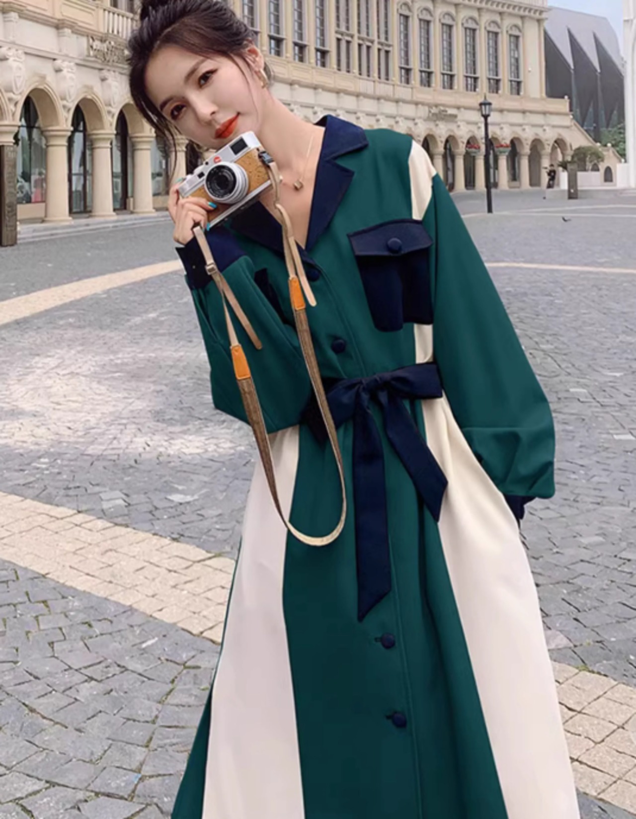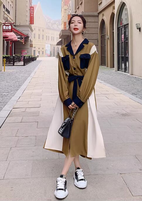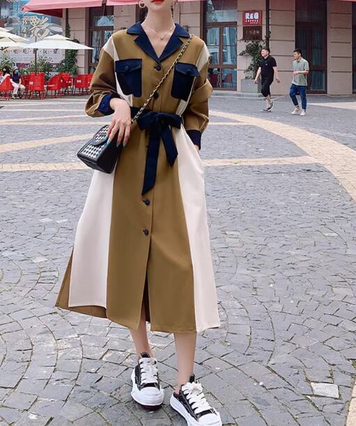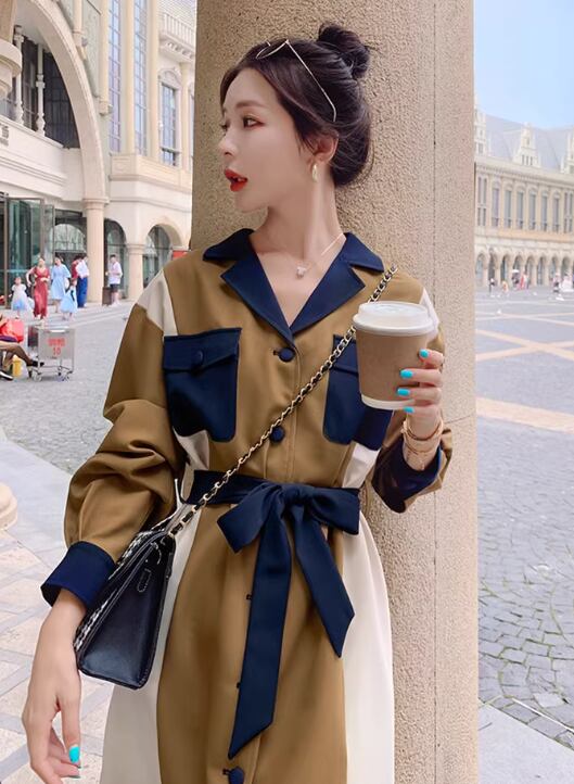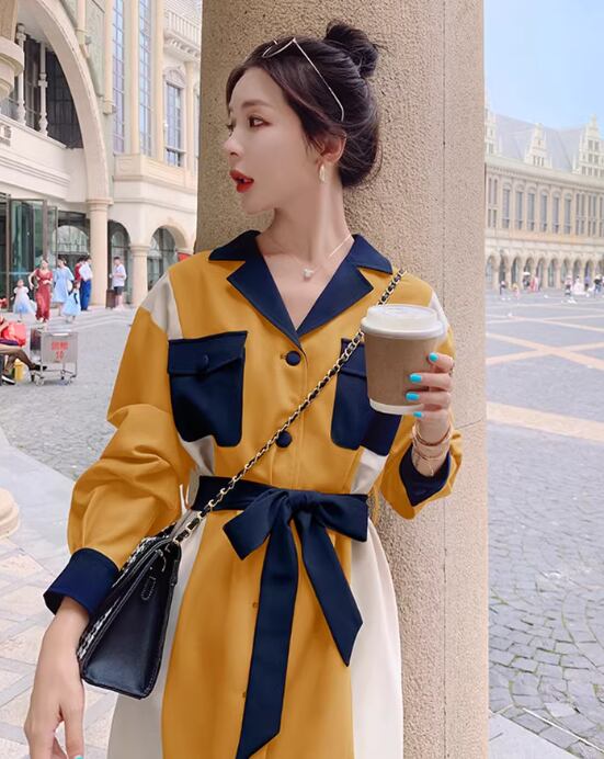 レディース ワンピース シャツワンピ 長袖 襟付き 切り替え ドッキング ベルト ウエストマーク ウエストリボン スリット サイドスリット 切り替えデザイン バイカラー 配色 かわいい 大人可愛い おしゃれ かっこいい レトロ こなれ感 ラフ ラブリー キュート 無地 秋 10代 20代 デート お出かけ 公園 女子会 休日 韓国 オルチャン コーデ 楽ちん 体型カバー 美脚 脚長 普段使い モテ 清楚 トレンド 流行 S M L XL