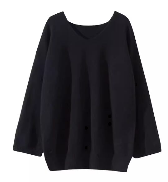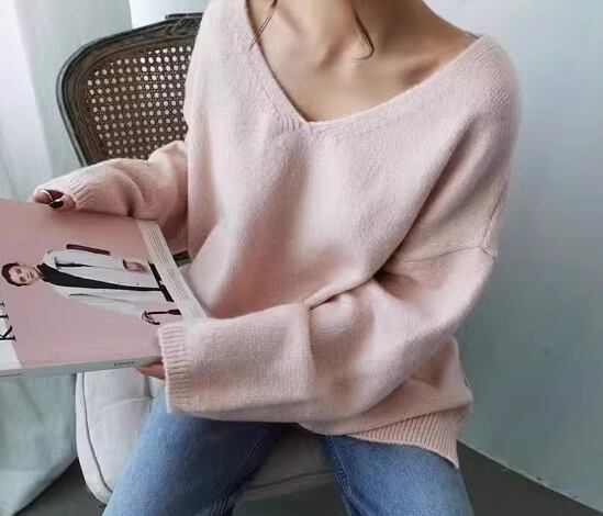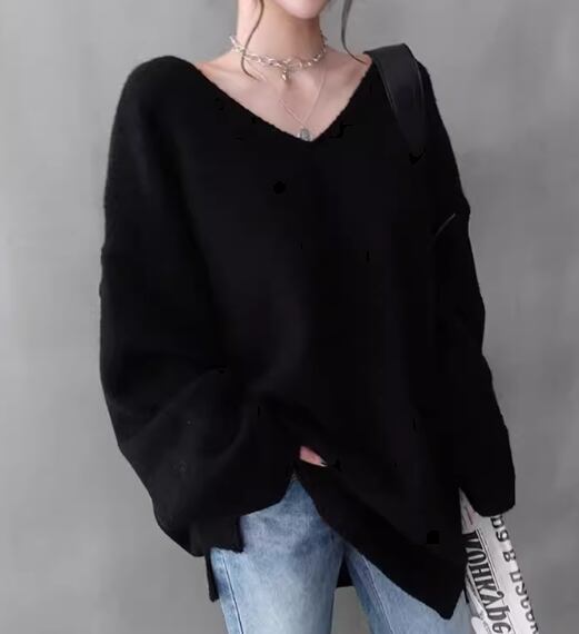 シックなカラーが大人可愛い、ゆったりシルエットのVネックニットセーター。